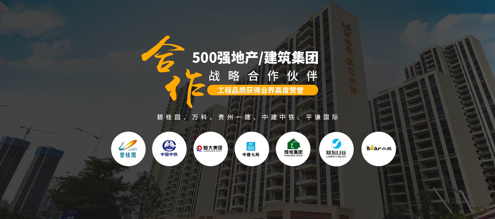 500強(qiáng)指定合作:與“碧桂園、萬(wàn)科、貴州一建、中建中鐵、平謙國(guó)際、恒大、雅居樂”等地產(chǎn)/建筑集團(tuán)建立長(zhǎng)期的戰(zhàn)略合作關(guān)系。
